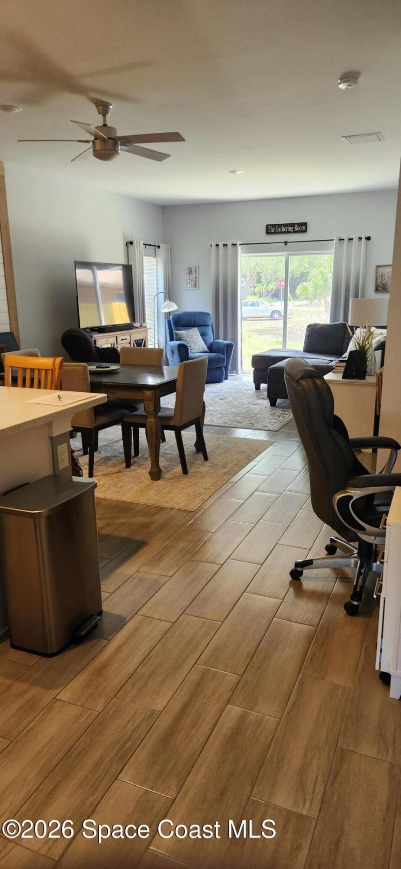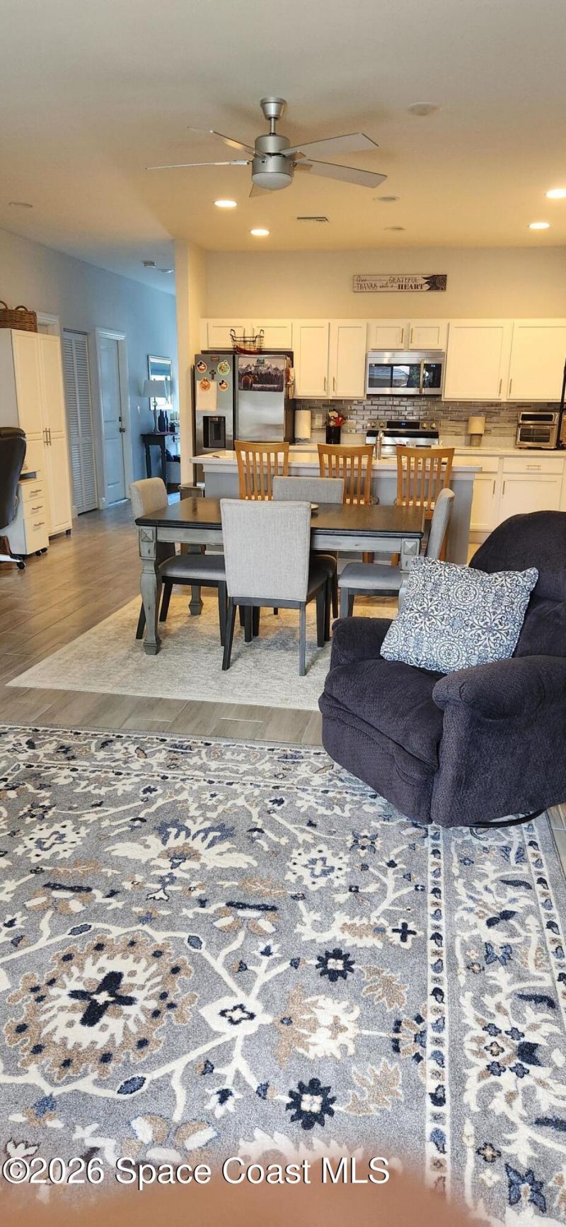 Concrete block and stucco home built in 2023, featuring impact windows and 9-foot ceilings. The property includes city water, solid surface countertops, and all-wood cabinetry throughout, including a kitchen island and built-in desk. The kitchen is finished with a glass backsplash Wall complemented by farmhouse-style accents and ceiling fans installed since 2023. Additional highlights include 4-inch baseboards, underground power service with no overhead power lines, and full-perimeter gutters.The home sits on a nicely landscaped lot with a mature live oak. Conveniently located just 10 miles from the beach road, and approximately 5 minutes from Publix, Lowes, Home Depot, Target, the mall, Sams Club, and Petco. The nearby airport offers scheduled service, and the area boasts over 20 golf courses, along with abundant dining, parks, fishing, and boating opportunities--everything that makes Vero Beach a sought-after destination.Dodgertown Elementary, Storm Grove Midde, Vero Beach HS